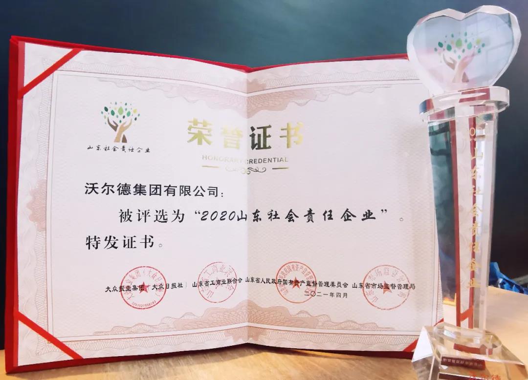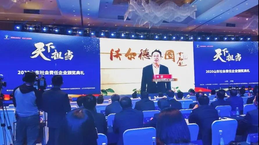 2021年4月23日下午,“天下?lián)?dāng)”2020山東社會(huì)責(zé)任企業(yè)頒獎(jiǎng)典禮在山東濟(jì)南云鼎大廈隆重舉行。沃爾德集團(tuán)榮獲“2020山東社會(huì)責(zé)任企業(yè)”稱號(hào),董事長(zhǎng)林擘親臨活動(dòng)現(xiàn)場(chǎng)并接受表彰。