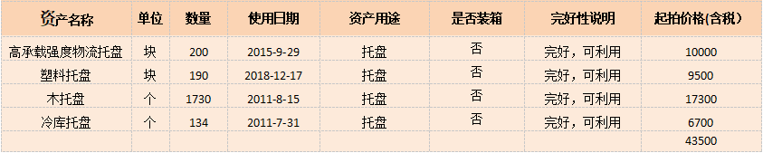 受委托,我公司將于2022年3月16日下午15時在金拍網平臺https://www.jinpaiwang.com.cn以網絡競價的方式公開處置高承載強度物流托盤、塑料托盤、木托盤、冷庫托盤  (具體見標的詳情表)