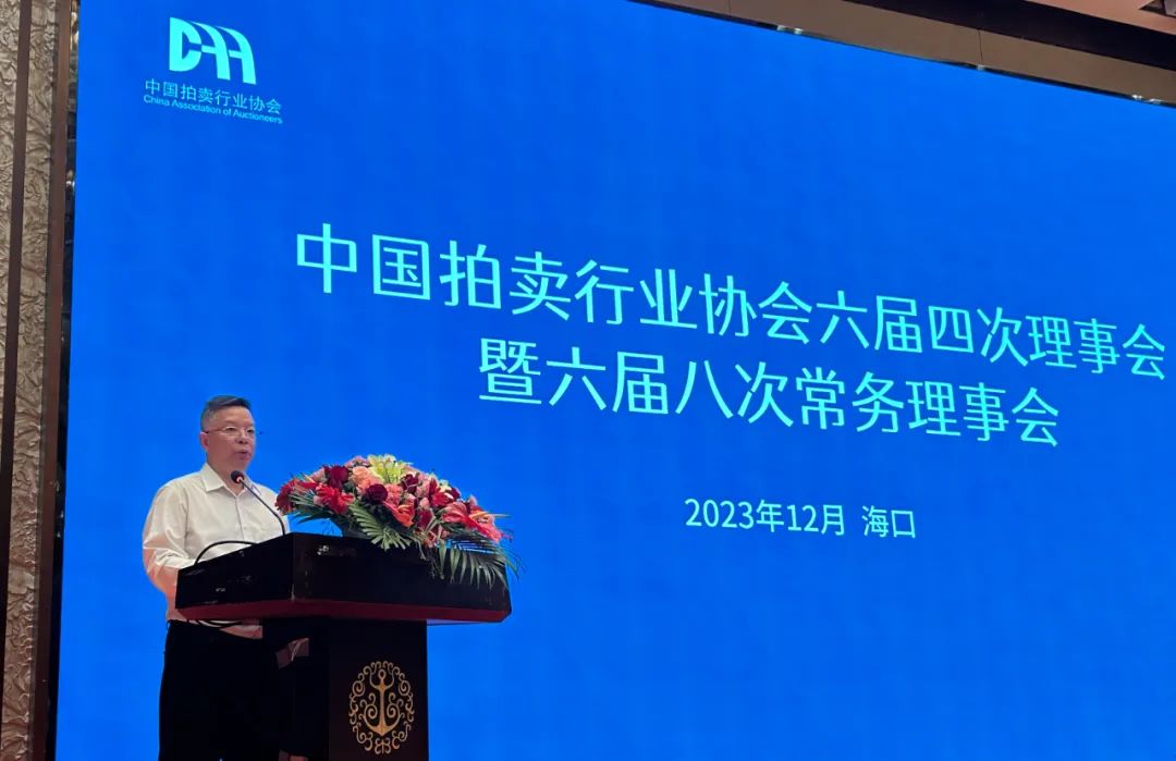 12月16日上午,中國(guó)拍賣行業(yè)協(xié)會(huì)六屆四次理事會(huì)暨六屆八次常務(wù)理事會(huì)在海口召開。會(huì)議以“持續(xù)鞏固拓展主題教育成果,切實(shí)將主題教育成效轉(zhuǎn)化為拍賣事業(yè)高質(zhì)量發(fā)展的強(qiáng)大動(dòng)力和具體實(shí)踐,不斷開創(chuàng)拍賣行業(yè)發(fā)展新局面”為主題,回顧總結(jié)2023年行業(yè)發(fā)展情況,研究部署2024年行業(yè)工作重點(diǎn)。中拍協(xié)副會(huì)長(zhǎng)王中明、法勇生、祁志峰、韓濤、馮明強(qiáng)、王儷潼,特邀副會(huì)長(zhǎng)苗華甫、劉建民,秘書長(zhǎng)賀慧出席會(huì)議。監(jiān)事長(zhǎng)湯炎非、監(jiān)事李彬雄、白重鑫列席;常務(wù)理事、理事單位及各省市協(xié)會(huì)負(fù)責(zé)人等300余人參加會(huì)議。根據(jù)黃小堅(jiān)會(huì)長(zhǎng)委托,會(huì)議由副會(huì)長(zhǎng)王中明主持。